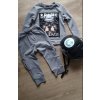 Velmi neotřelé klučičí tepláky v šedé barvě mají kromě klasických kapes ještě dvě skládané našité nad koleny.Zajímavě je řešen i ozdobný prošev na zadním díle. V pase mají gumu, takže jsou pohodlné a hodí se na jakékoliv dětské aktivity.